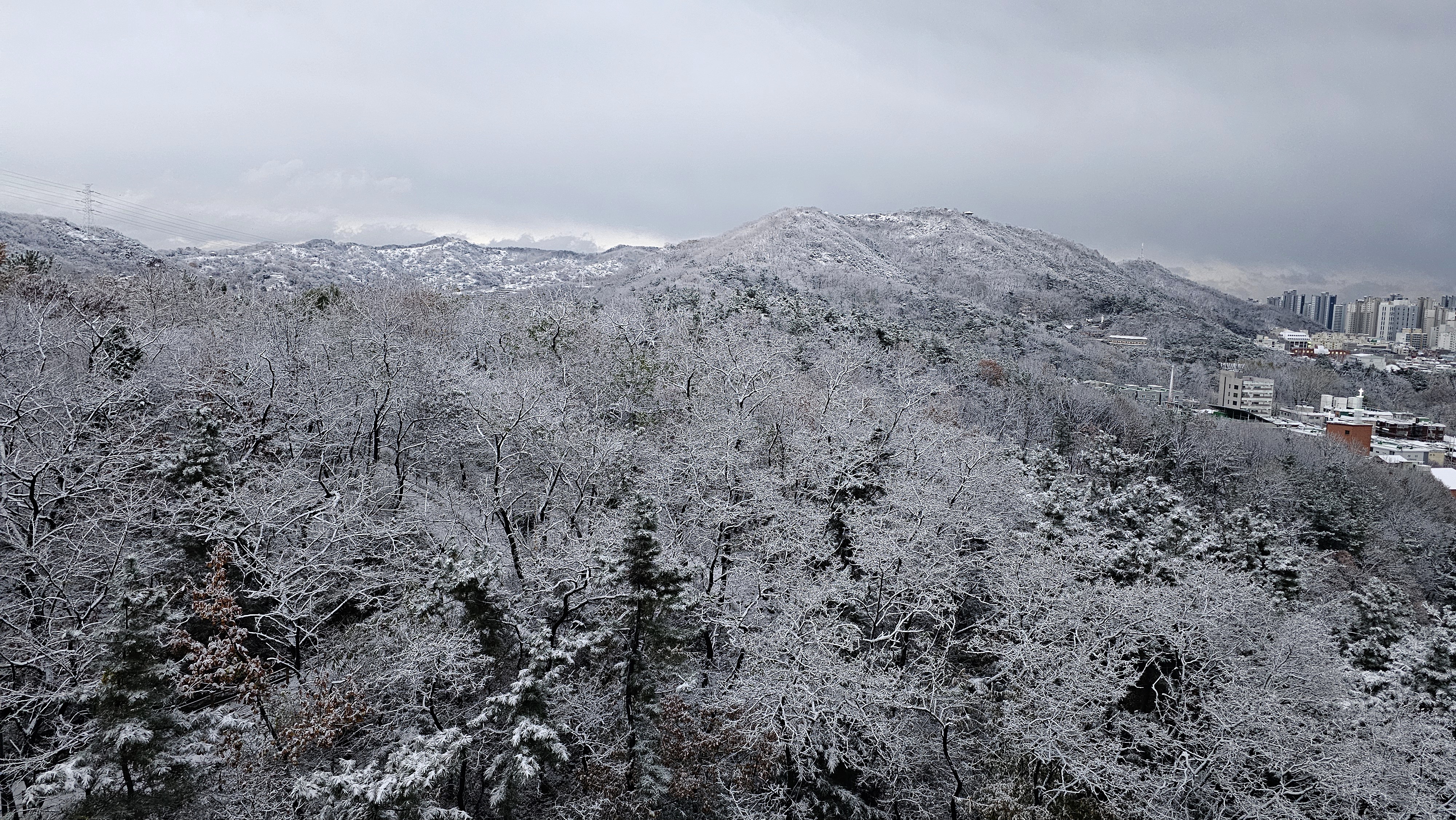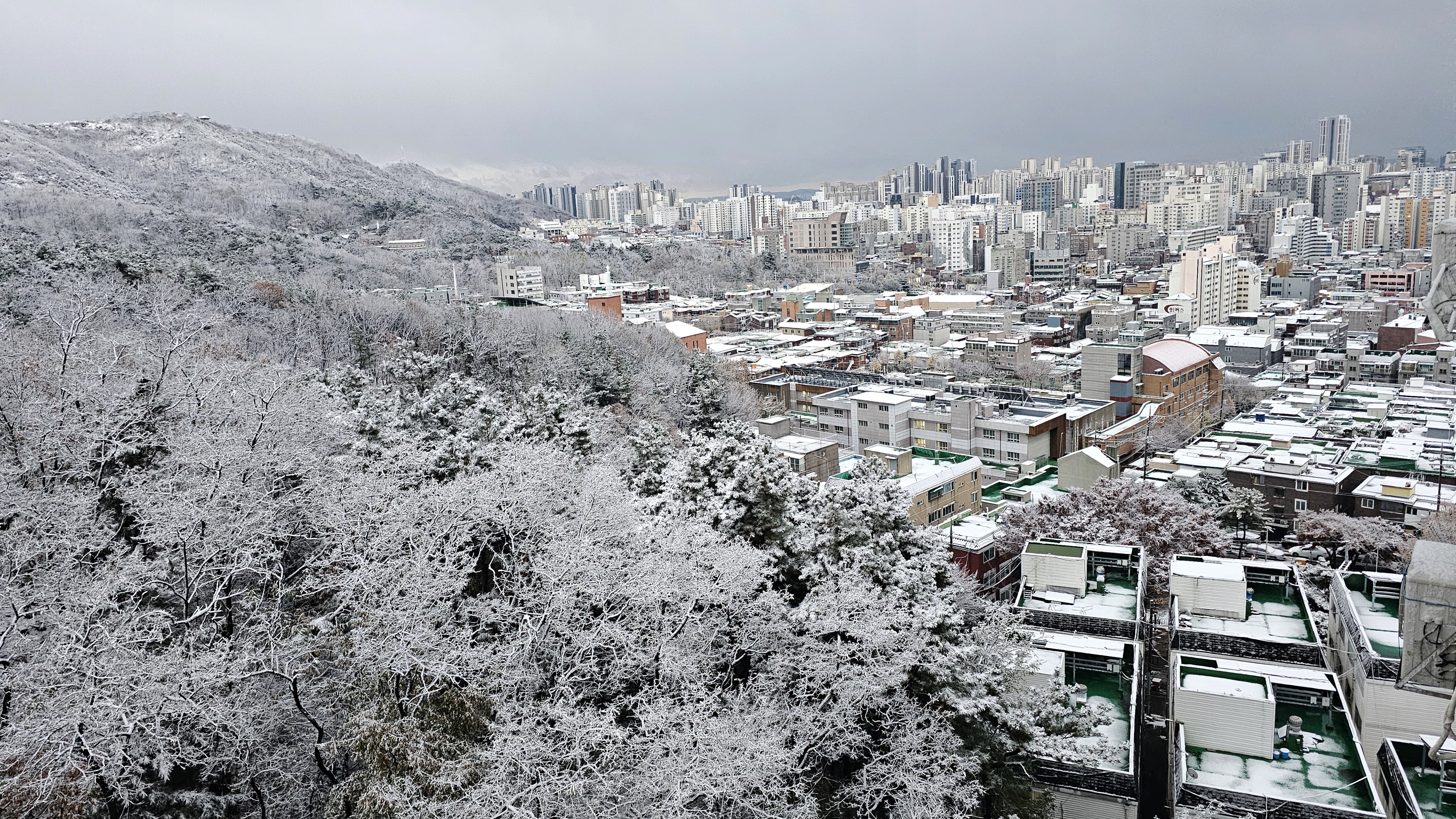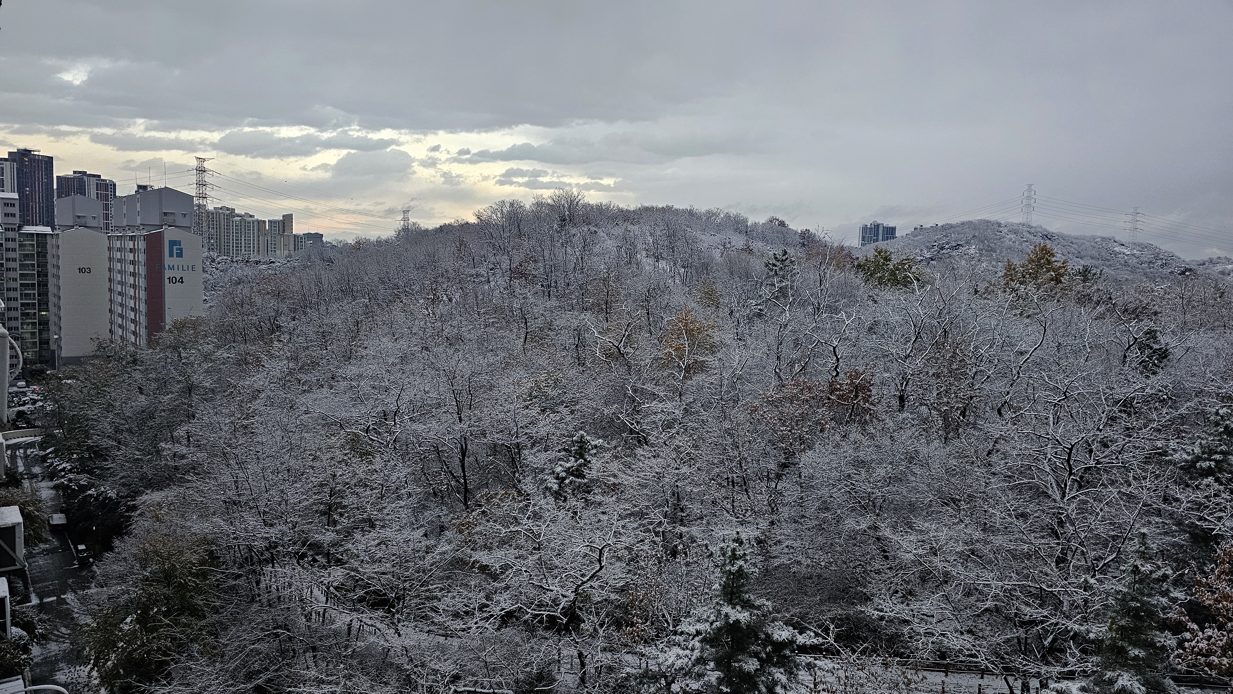 첫눈 내리던 날, 집 밖을 내다본 풍경입니다.