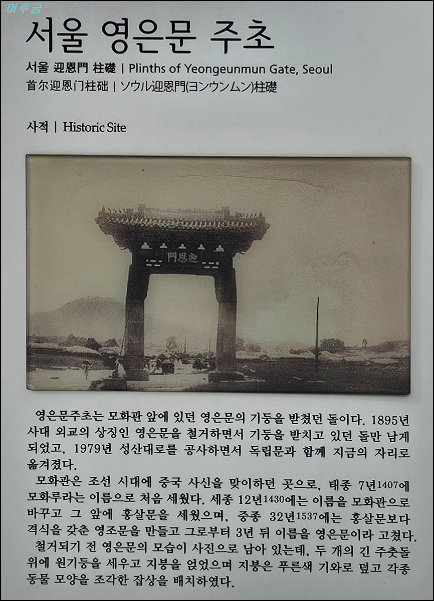 독립문 앞에 세워진 두 개의 돌기둥