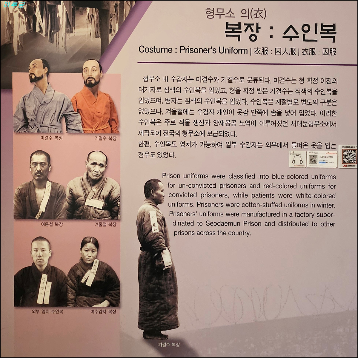 좌 : 가결수 수인복(일제강점기), 판결을 받아 형이 확정된 가결 수감자가 입었던 수인복