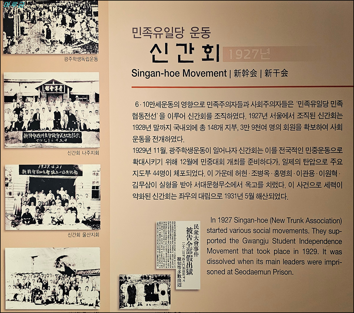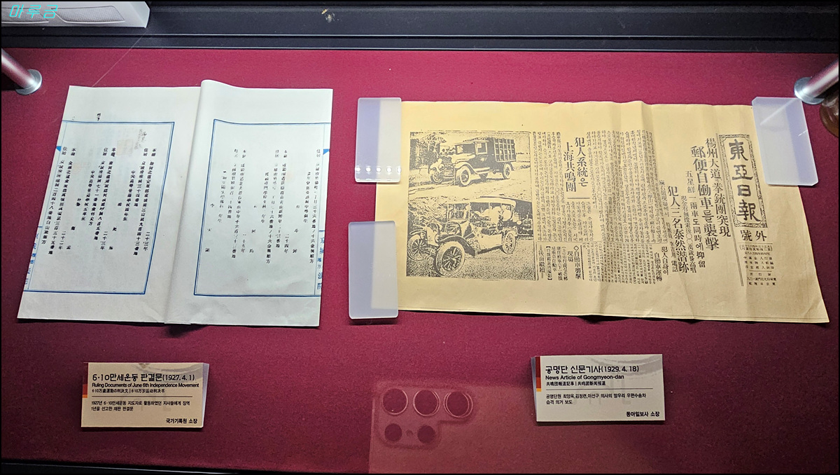 우 : 공명단 신문기사(1929.4.18), 공명단원 최양옥, 김정련, 이선구 의사의 망우리 우편수송차 습격 의거 보도