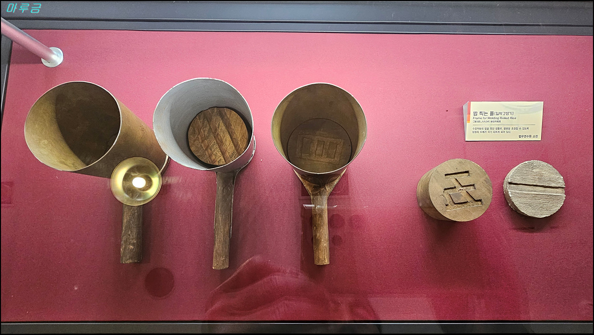 밥 찍는 틀(일제강점기) : 수감자들의 밥을 펐던 밥틀로 밥량을 조절할 수 있도록 받침의 두께가 각기 다르게 되어있다.