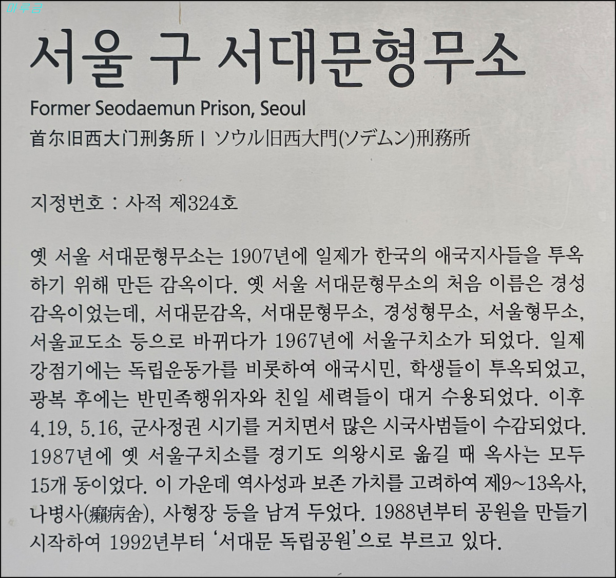 1945년 11월 21일 : 서울형무소로 명칭 변경