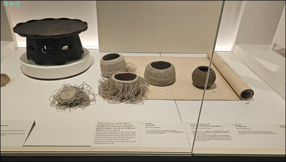 지승(한지로 꼰 노끈)으로 만든 상, 자리, 바구니, 그릇 등등