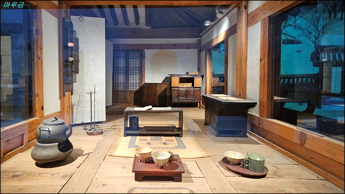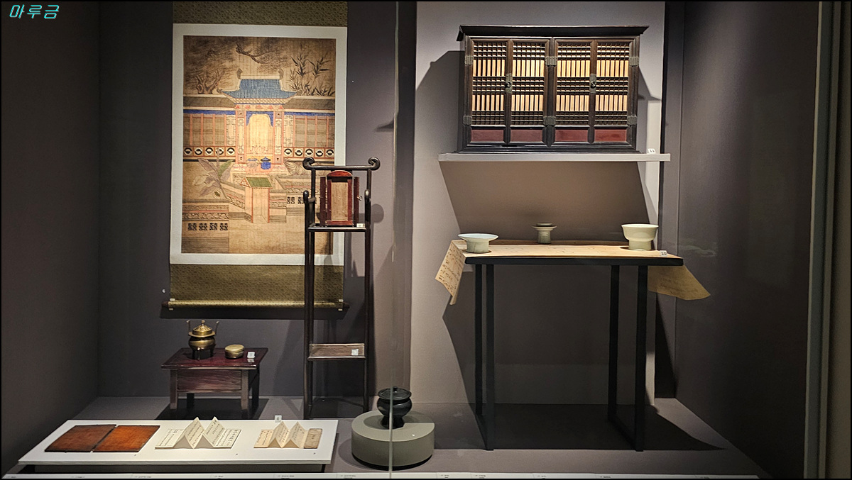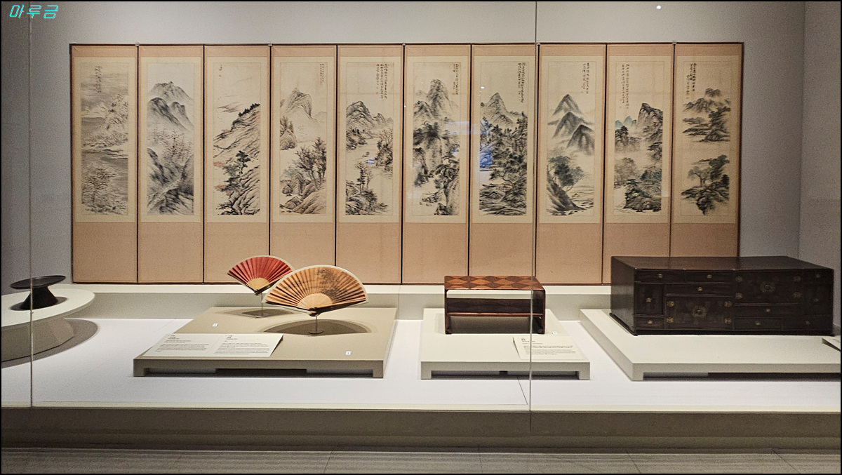 산수도 10폭 병풍, 서안(책을 읽거나 글을 쓸 때 사용하는 낮은 상), 문갑(문서와 문구류를 보관하는 가구)