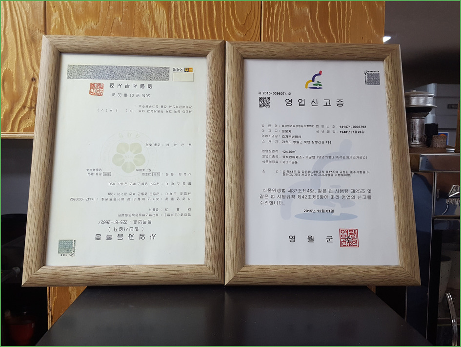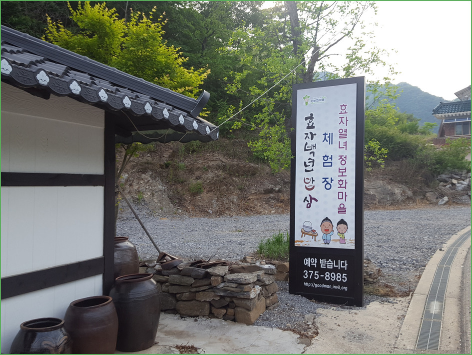 강원도 평창과 영월의 경계에 있는 삼방산 / 절개산 산행을 마치고 들렀다. 토종닭에 6년된 인삼이 들어간 백년밥상 토종닭백숙을 주문해서 먹어봤다. 공기리의 정보화마을/ 효자열녀마을에 위치한 음식점으로 동네 분들이 직접 운영을 하는 마을공동출자 중소기업이라고 한다. 음식점이 중소기업으로 등록돼 있는 건 여기서 처음 본다.