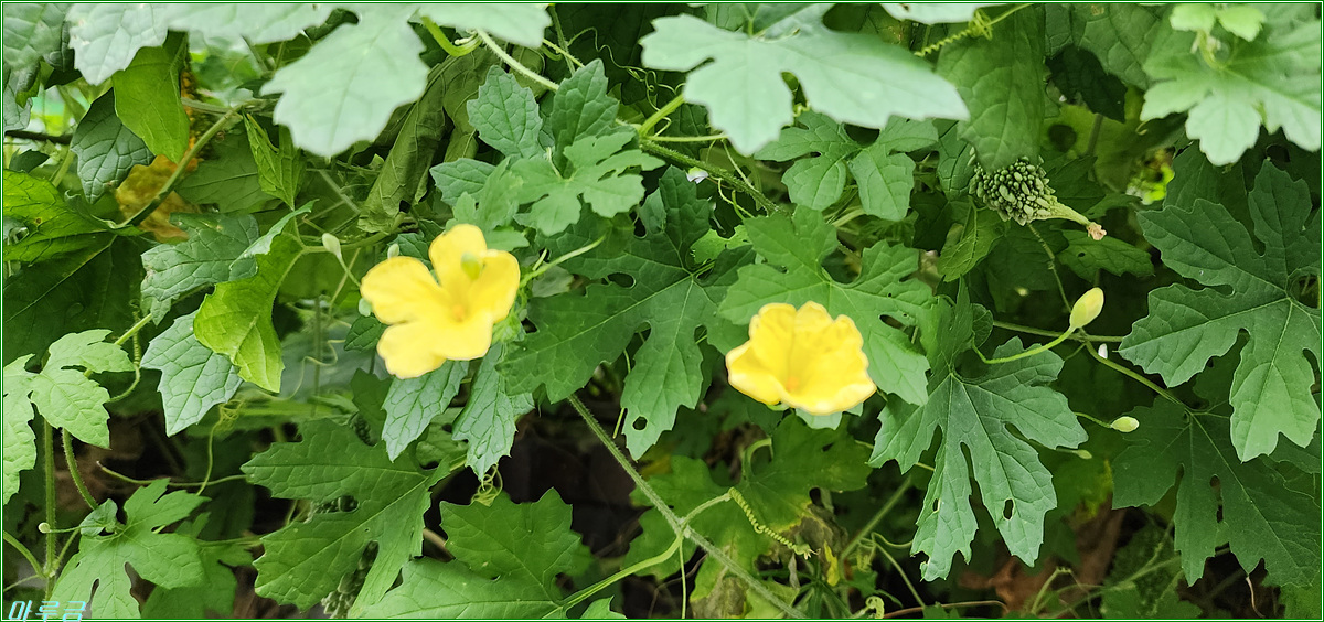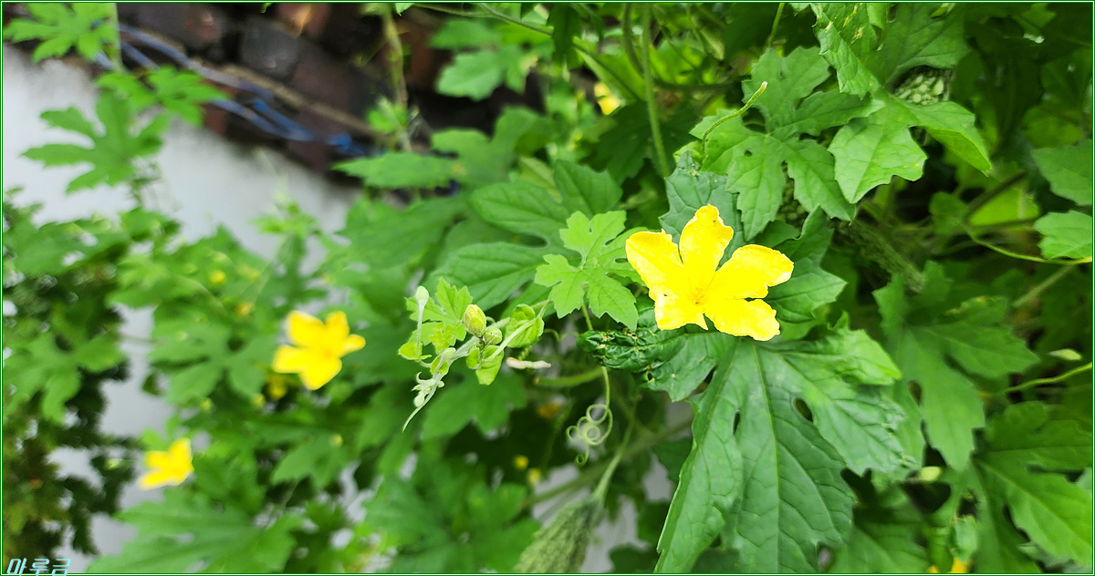 인천 부평구 십정동 마을의 어느 골목길을 지나가다가 담벼락에 걸친 여주가 눈에 뜨이길래 촬영해봤다. 꽃과 열매를 동시에 볼 수 있었다. 여주는 한해살이 덩굴식물이다. 꽃은 고과화, 열매는 고과, 잎은 고과엽, 뿌리는 고과근, 씨앗은 고과자라고 한다.