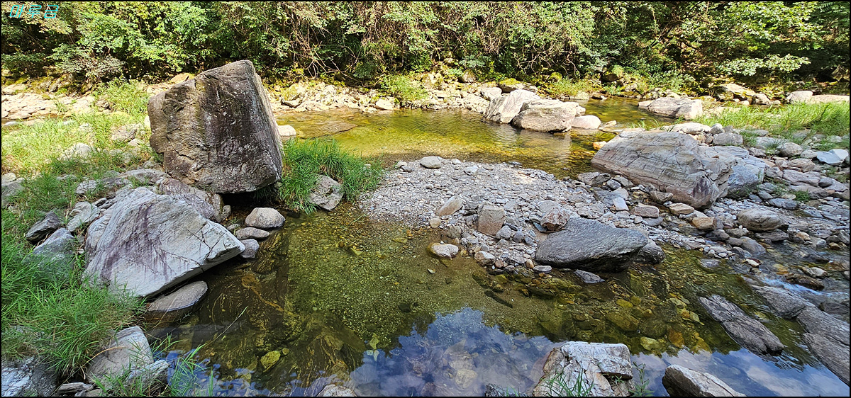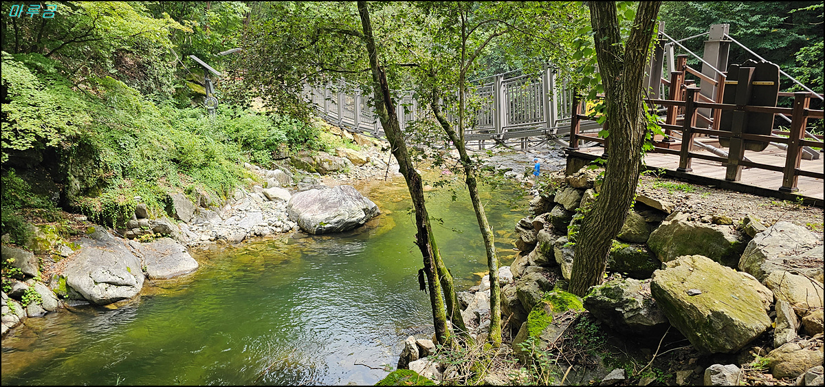 물빛 속까지 훤히 들여다보이는 것이 하얀 긴 실타래를 풀어 놓은 듯하고, 일렁이는 물살은 자연을 노래하며 유유히 흘러간다. 깊은 소가 있는가 하면, 가늘면서 길게 흘러가는 모습, 꼬불꼬불하게 흐르는 계곡 등 다양한 모습을 이루고 있다