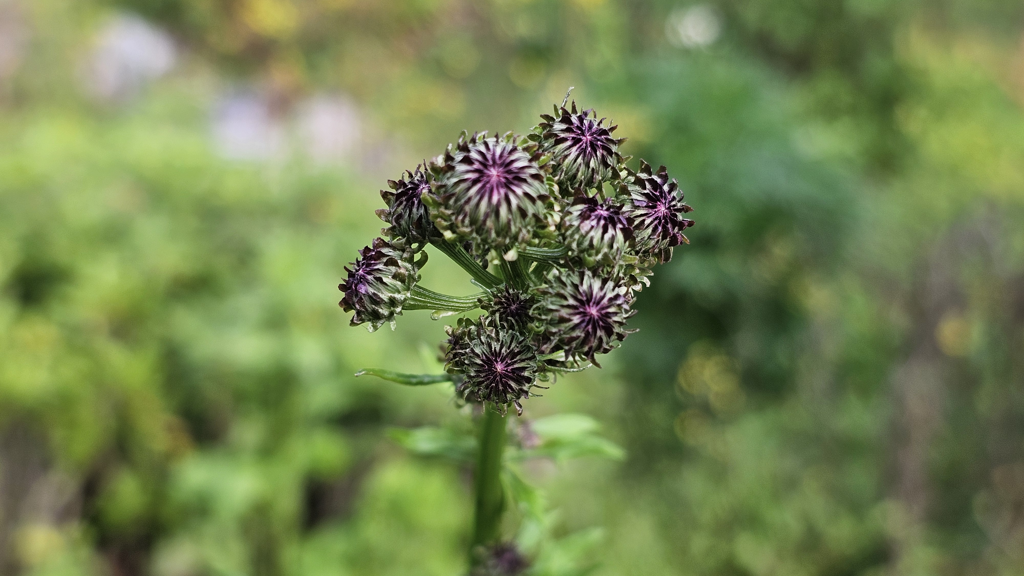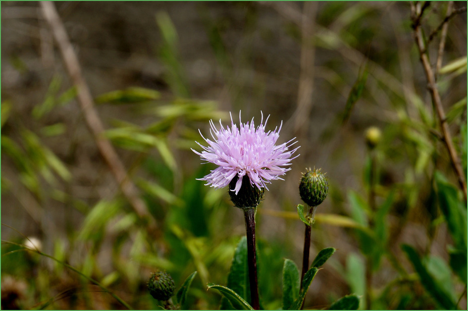 잎과 줄기에 가시가 없으며, 엉겅퀴에 비해 꽃망울이 좀 더 크다.